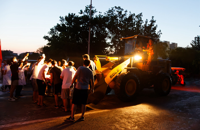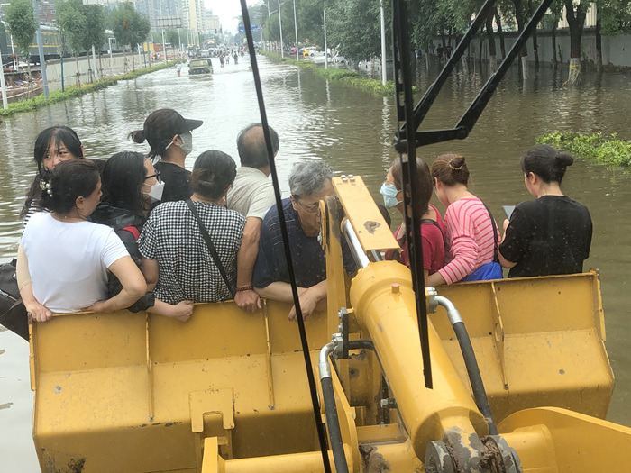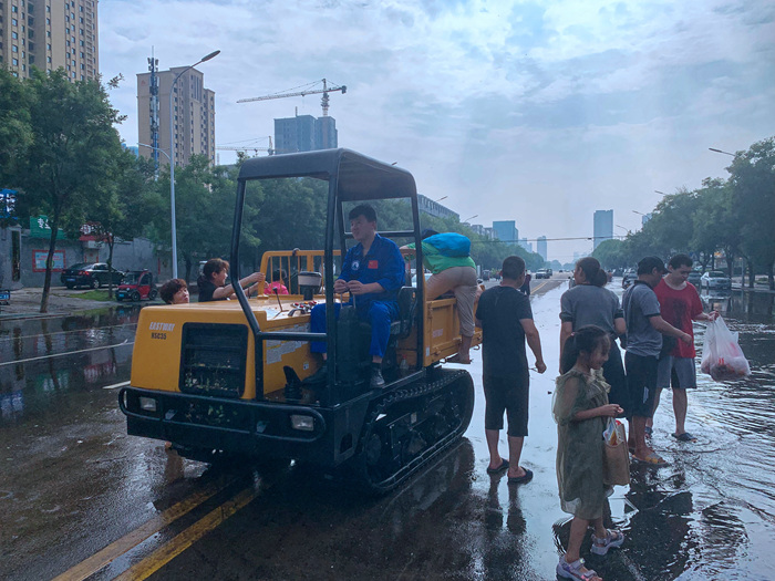 自20日起,集團派出鏟車、多功能工具車等多臺設備為被大水圍困的居民接駁人員、物資,同時開放休息室為周圍停電居民提供充電服務。