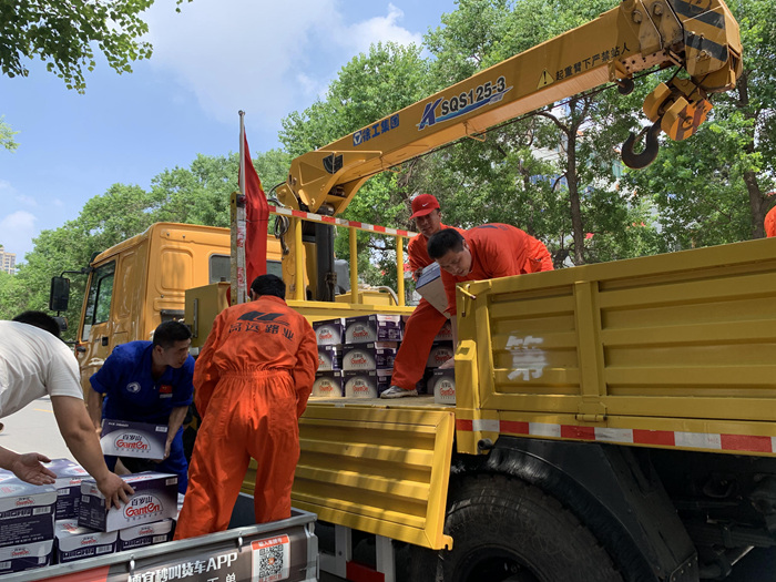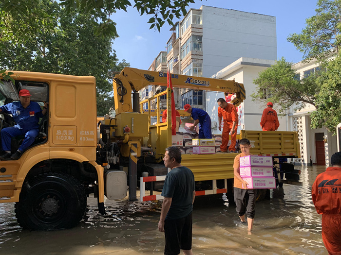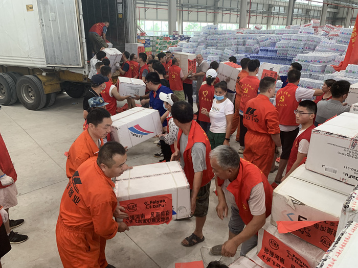 在暴雨過后,集團員工自發組成志愿者團隊,連續多日參與新鄉市高新區對外接收救援物資的分派點進行物資搬卸。